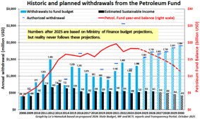 In October, the Government proposed the State Budget for 2026, which will withdraw $1,719 million from the PF, more than three times the Estimated Sustainable Income. |