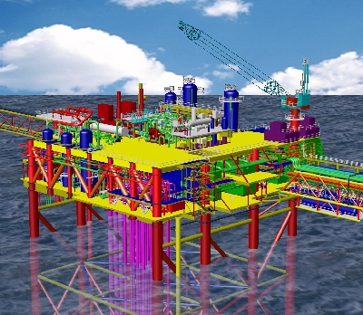 The key feature of the jackets is an open slot at the top to accommodate the barge for mating the topsides with the jacket, using the floatover technique. The BU-DPP accommodates sixteen well slots and supports the risers for the pipelines to and from the BU-WP1 and to the BU-FSO.