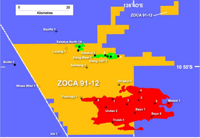 Joint Venture Partners: Santos (ZOCA 91-12) Pty Ltd (21.426) Inpex Sahul, Ltd. (21.2087) Petroz (Timor Sea) Pty Ltd (13.371) Emet Pty Ltd (1.577) |  |
