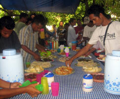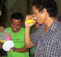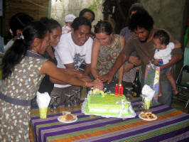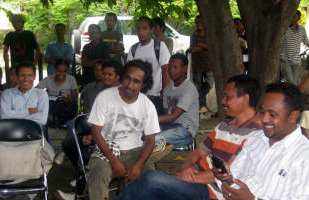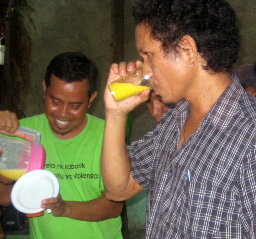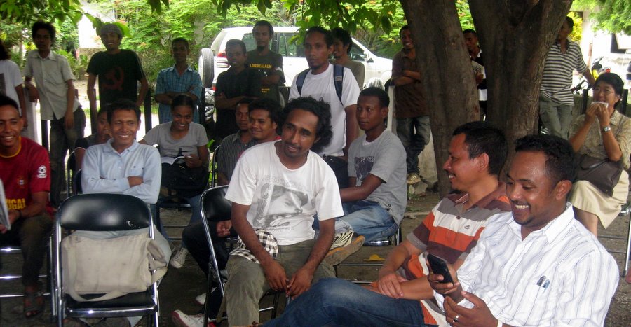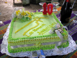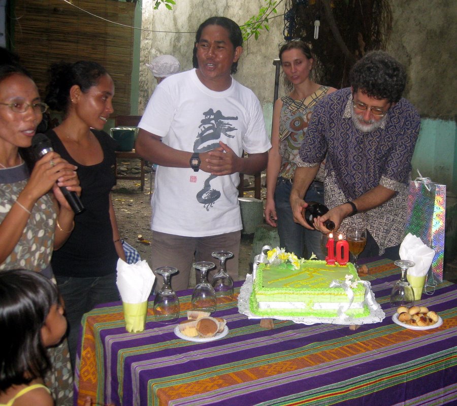 | La’o Hamutuk hari iha 20 Maio 2000, la too fulan neen hafoin referendum ne’ebé hapara okupasaun Indonesia nian. Hafoin tinan rua tiha, data ne’e sai data ba loron restaurasaun independensia nian, nune’e ami toman ona selebra ami nia festa tinan iha semana tuir fali mai. Iha 25 Maio 2010, ema liu 100 husi ONG lokal no internasional, sosiedade sivil, familia, embaixada sira, agensia internasional sira, governu, parlamentu no husi fatin seluk tan halibur hamutuk ho ami hodi selebra dekada ida ami nia servisu, nebe sei kontinua ba futuru. Klik foto sira iha karaik no bele hare boot liu. | La'o Hamutuk was founded on 20 May 2000, less than six months after the referendum ended the Indonesian occupation. Two years later, that date became Restoration of Independence Day, so we usually celebrate our anniversary the following week. On 25 May 2010, more than 100 people from local and international NGOs, civil society, family, friends, embassies, international agencies, government, parliament and elsewhere joined us in celebrating a decade of work, which will continue into the future. Clicking on any of these photos will make them larger. |