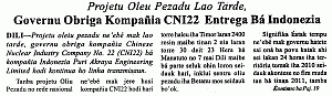 During the month of October, 11 more towers were erected, bringing the total to 41 (1.7%). At this rate, it will take until 2027 to finish the national distribution grid. Negotiations with Indonesian subcontractors to build parts of the transmission lines are ongoing, with no contract yet signed. EB reports that they are "constantly making pressure on CNI22 to speed up agreements with Indonesian subcontractors for transmission lines and Timorese subcontractors for the substations, but the result is always the same: promises over promises, the Contractor attitude remains stubborn." EB is also concerned about the "deterioration of the quality of the work," especially when they are not on site. In addition to urging CNI22 to move faster, EB notes "The Contractor is WARNED once more that handling of the material, transporting, loading, unloading, storage continue to be UNACCEPTABLE, a lot of damages are caused." However, the Government is making payments on schedule, although the contracted cost of the project is much more than Parliament has been told or what has been appropriated. Following are the totals the Government will pay CNI22 and its subcontractors each year, in millions of U.S. dollars, for building the generating stations and high-voltage national grid. | Iha Marsu 2009, durante prosesu tenderizasaun ba konsultasaun ne’ebe ikus mai EB hetan, La’o Hamutuk husu, "Autoridade saida mak Konsultan sei hetan atu obriga hodi halo tuir?" Ami fo kuidado katak “Governu sei efektivu liu atu asegura komitmentu Kontrator [atu implementa mitigasaun] duke Konsultan ida sei halo.” Seidauk halo tuir rekerimente legal atu hetan lisensa ba ambiental, permisaun ba direitu asesu, laiha survey ba linha baziku ambiental no laiha lisensa atu tesi ai. CNI22 la prepara relatoriu ida ambiental kada mensal, maske husu kona ba sira atu halao iha Janeiru 2010. Trabalhadores Timor-oan hetan ekipamentu salvasaun ne’ebe menus liu duke Xineza sira, no Xineza sira ne’e moris iha kondisaun ida ne’ebe laiha sanitasaun, kondisaun la seguru. Planu Saude/Protesaun/Ambiental no Planu Emerjensia Fatin servisu ne’ebe nia “deitalhu operasional esensial ne’ebe falta” no presiza atu hadiak. Kompania laiha prosesu formal ba reklamasaun ka preokupasaun, la kuda fila fali ai horis sira ne’ebe sira tesi ona, laiha Planu Jestaun ba Foer Solidu, laiha zona atu tahan area sira entre area rezidente ba populasaun no projeitu nian, la halo tuir rekerimentu ba fatin foer, tahu, mina- no fatin atu kapta foer mina nia, laiha fasilidade ba sanitasaun ka tratamentu foer. Iha loron 18 fulan Novembru, Primeiru Ministru halo konfuzaun ba rona-nain Radio Timor-Leste (bele rona radio ne’e iha ne’e, lian ne’e la hetan edit) hodi hateten ba rona nain sira katak informasaun La’o Hamutuk nian ne’ebe hateten Governu kansela ona kontratu ba CNI22 ne’e la los, no depois ne’e nia koalia kona-ba tore transmisaun nian. Jurnalista koalia kona-ba sosa jerador husi Finlandia ho nia todan toneladas 250, maibe jurnalista ne’e ho Primeiru Ministru la hateten katak Governu muda ona kontratu ba sentral eletrisidade husi CNI22 no fo ba Puri Akraya Engineering fulan rua antes. La’o Hamutuk nia relatoriu ida ne’e Sydney Morning Herald no media seluk uza ba sira nia artigu, inklui Timor Post (klik imazem iha liman karuk atu le’e artigu iha Tetum husi 16 Dezembru).