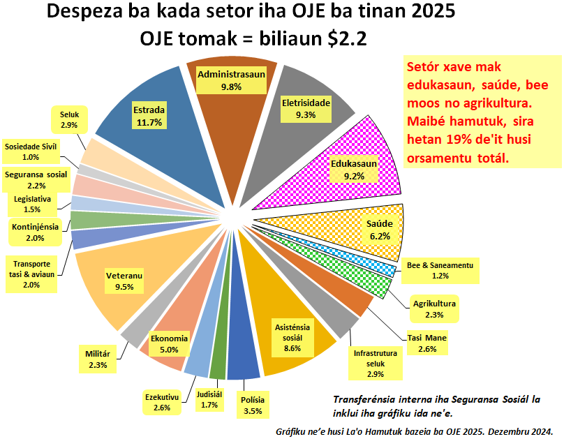Ezekusaun Orsamentál Dekretu-Lei nu. 43/2024, de 20 Dezembru, fó detallu kona-ba ezekusaun OJE 2025. Hamutuk ho informasaun seluk, Governu distribui ona pakote ba órgaun sira relevante iha loron 7 Janeiru tinan 2025. |