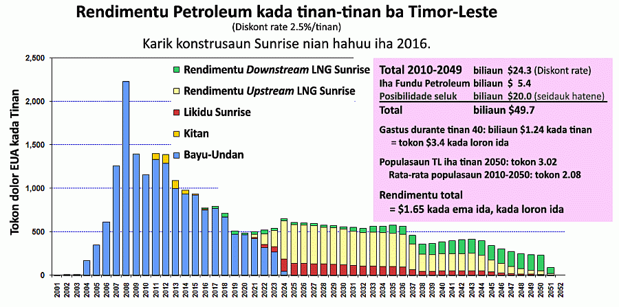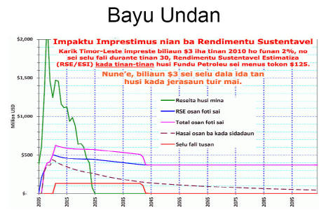 Tamba ne’e, la lojiku liu ba Timor-Leste atu halo imprestimu wainhira osan husi petroleum nian sei suli hela mai, hafoin selu fali ba, wainhira rekursu naturais Timor-Leste nian menus ka maran. Ita hotu bele relembra katak, iha biban boot ba Timor-Leste atu halo deve husi liur, wainhira Timor-Leste hahu nia governasaun iha 2002. Deve bele akontese wainhira nasaun nia situasaun ekonomia nia fraku, no iha defisit orsamental nian, Timor-Leste iha defisit no situasaun ekonomia ne’ebe fraku iha tinan 2002-2004, molok estabelesimentu Fundu Minarai. Maibe deve husi liur nunka akontese, tamba ne’e, ita tenke iha orgulhu boot ba ida ne’e. Karik Timor-Leste hahu ona deve osan husi nasaun seluk ka instituisaun finanseiru internasional ruma, no sei selu iha futuru. Ita lahatene karik oinsa governu bele fila fali tusan ida ne’e iha futuru . Maske tusan Ida ne’e tama kategoria konsensional (funan husi tusan ida ne’e kiik liu kompara hotusan iha merkadu nian), Timor-Leste sei hetan susar atu selu ne’e tamba: