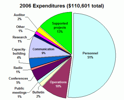 Financial audit | 4,200 | 2,341 | -1,859 | We audited our 2004 financial report during 2006 but has also budgeted to audit 2005 during 2006. Our 2005 and 2006 audits will be done during 2007. |