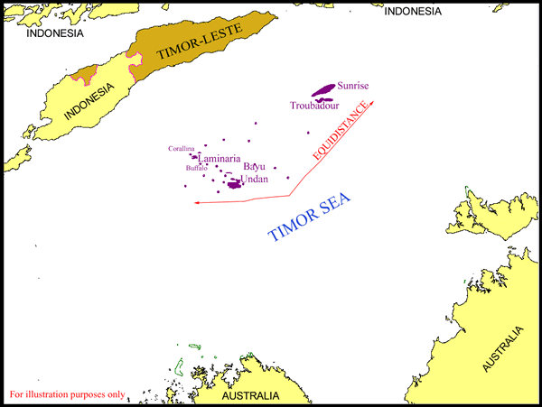 EQUIDISTANCE MAPInternational law would set the longitudinal boundary dividing the Timor Sea into northern and southern parts as an equidistance line (or halfway line) between Timor-Leste and Australia... (more)